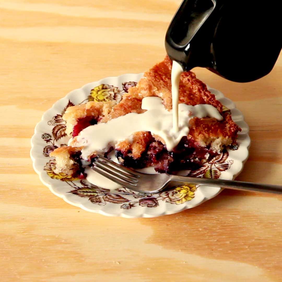 This is a wonderful and versatile recipe that uses a “cuppa” flour, a “cuppa” sugar, a “cuppa” milk etc. I love that you can use just about any fruit you want in it too! It’s perfect for last minute guests or for a potluck!