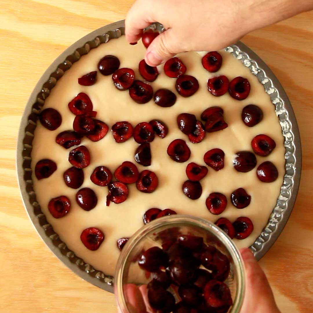 I’m not certain this is actually a true cobbler? I think it may be a more of a buckle, but the name sounds better when you call it a cobbler…. so please… nobody report me to the cobbler police! One thing’s for sure, the recipe is totally versatile! You can use just about any type of fruit in it! I’ve even used frozen fruit. Some variations I’ve made: strawberry, peach, donut peach, mixed berries, raspberry, plum, I’ve even made it with white chocolate and macadamia nuts! In this recipe I’m using the most wonderful cherries from Washington State. I also tend to swap out the flavor extracts that I add to this recipe. Sometimes I like vanilla, sometimes almond, or even something exotic like coconut! you should totally experiment with whatever you have fruit and extract wise!